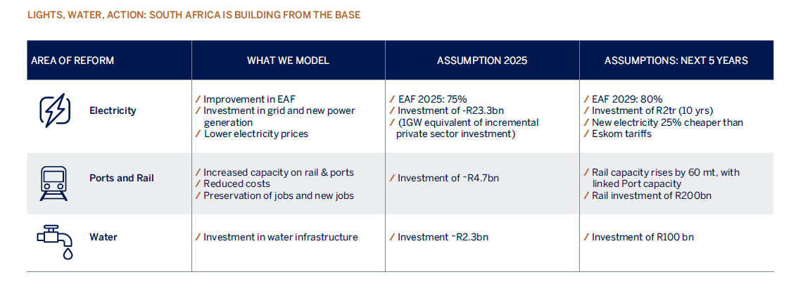 Here, it is important to note the base effect. It is no secret that South Africa’s economy is coming off a low base. GDP growth, capital investment, and infrastructure have been muted and, at times, in decline. This has been harmful to prosperity. However, it also creates prospects for outsized benefits from relatively small improvements – chiefly for those who stay the course.